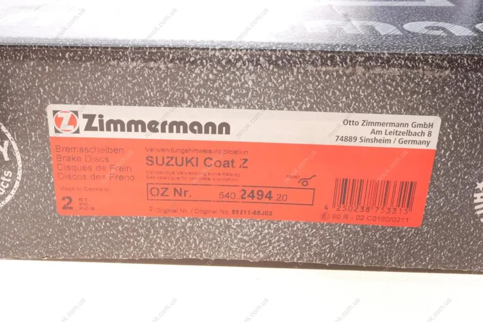 Диск тормозной (передний) Suzuki Grand Vitara I 03-/II 05- (294x25) ZIMMERMANN 540.2494.20 (5521165J01, 5521165J00, 5521165J02)